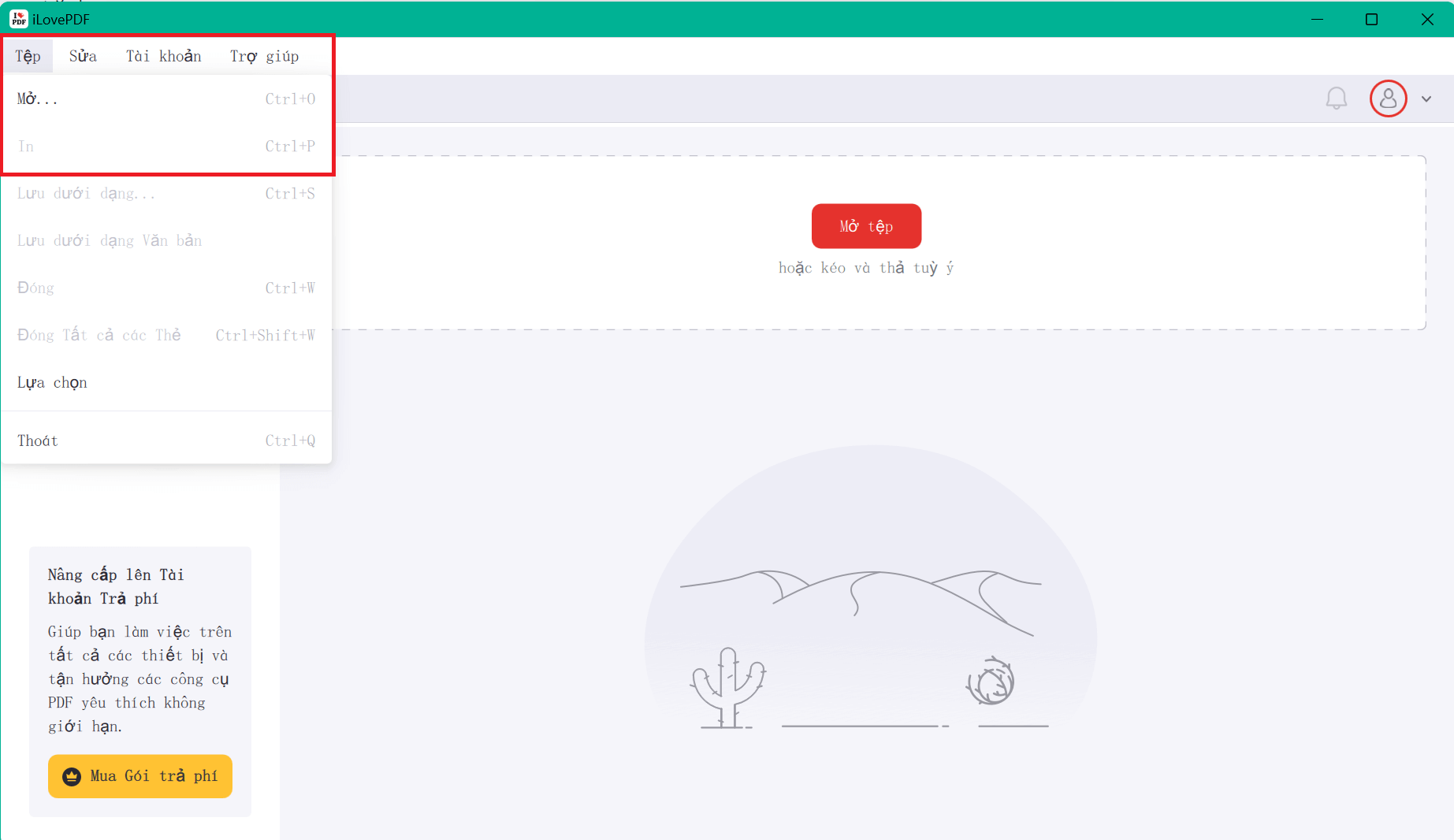 Bước 2: Để tải một tập tin PDF vào trình đọc Desktop, nhấp vào 'Mở Tập Tin' hoặc kéo và thả nó vào đó.
