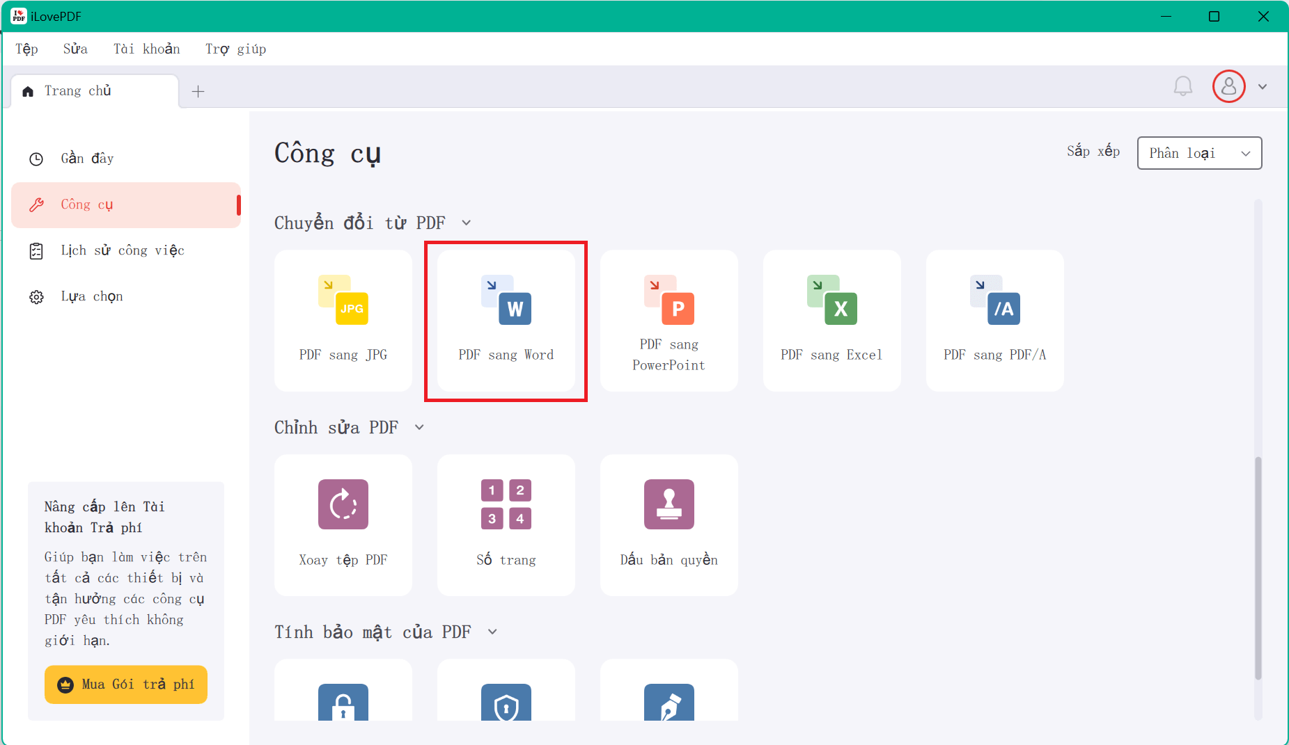 Bước 2: Chọn "PDF sang Word" từ menu Công cụ.