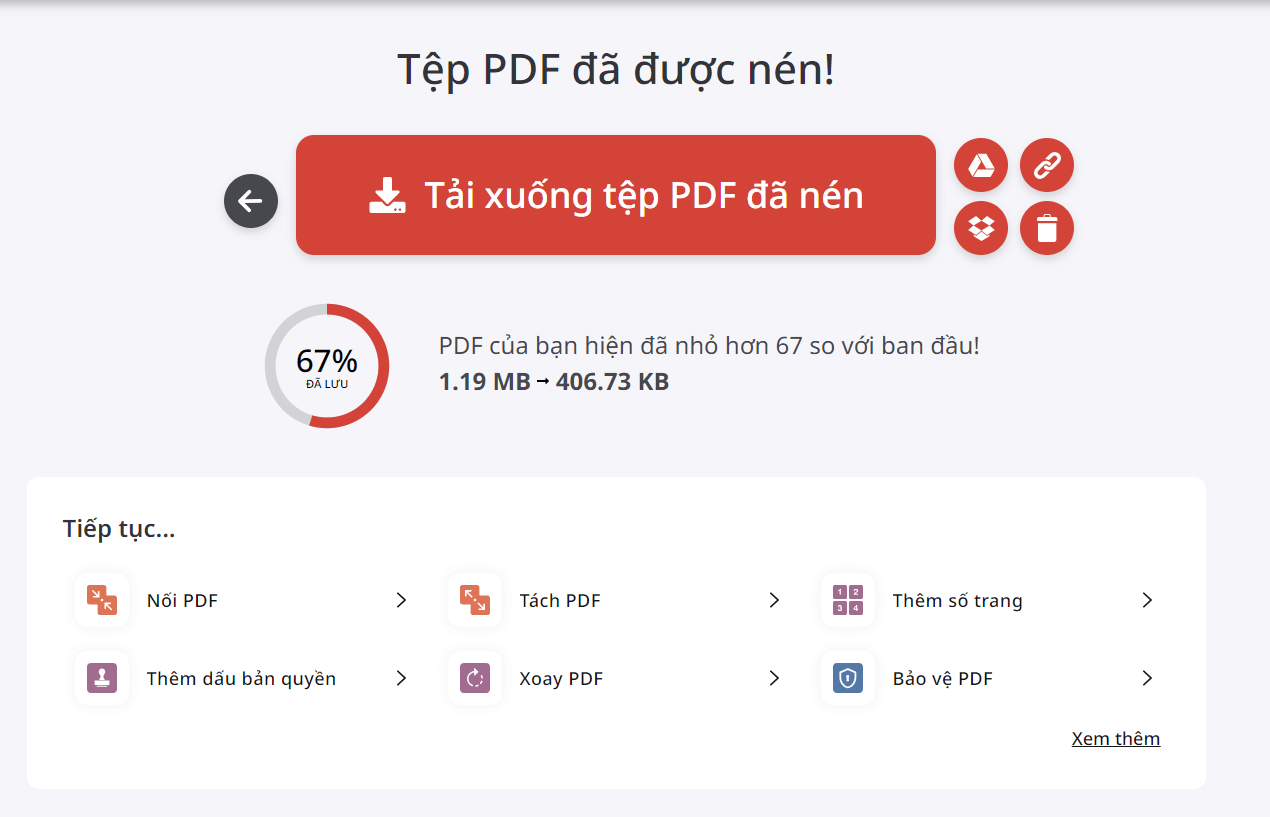 PDF tối ưu của bạn đã sẵn sàng để tải xuống hoặc bạn có thể lưu nó trực tuyến.