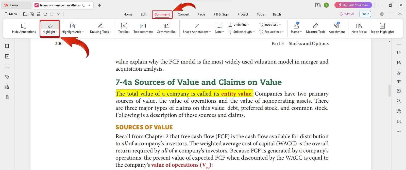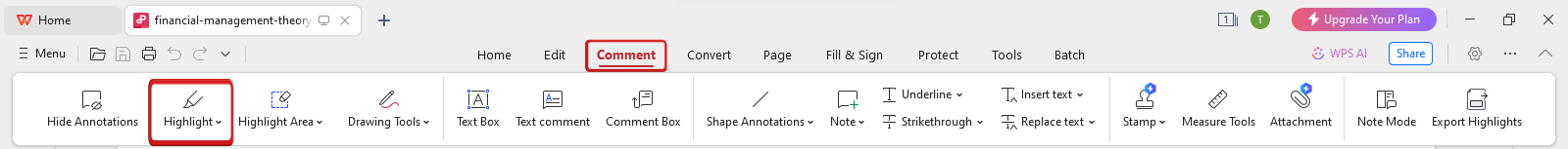 Bước 1: Để đánh dấu, chỉ cần chọn công cụ Đánh Dấu trong thanh công cụ Bình luận, sau đó sử dụng con trỏ của bạn để đánh dấu văn bản trong PDF của bạn.