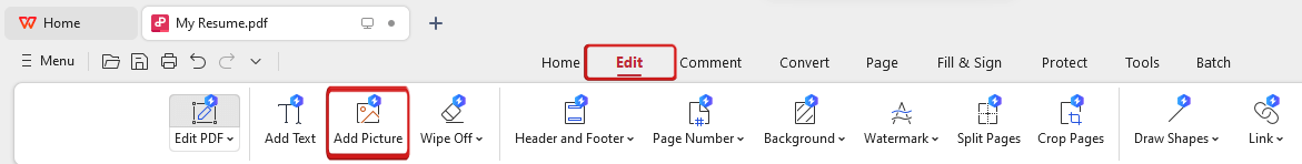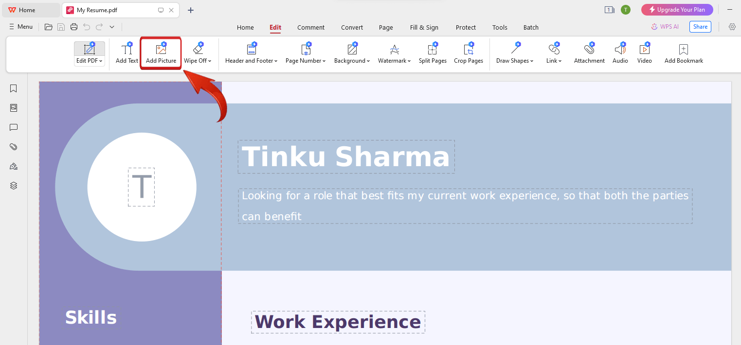 Bắt đầu: Mở PDF sơ yếu lý lịch của bạn trong WPS PDF Editor, cung cấp giao diện dễ sử dụng và các công cụ trực quan.