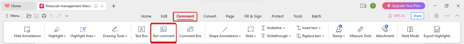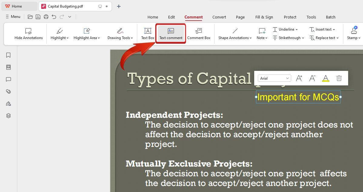 Bước 1: Để sử dụng Ghi Chú Văn Bản, truy cập công cụ Ghi Chú Văn Bản từ Thanh công cụ Bình luận.