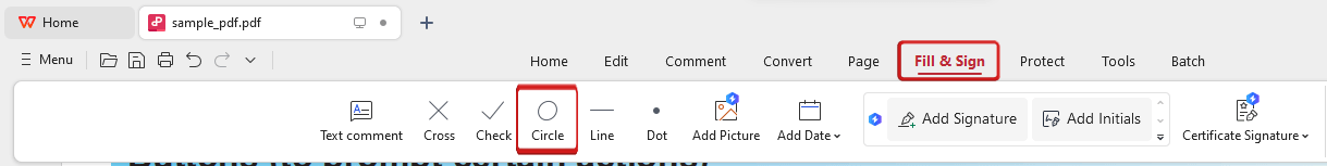 Bước 1: Nếu đây là lần đầu tiên bạn thêm chữ ký điện tử với WPS PDF, hãy bắt đầu bằng cách nhấp vào nút "Thêm Chữ Ký" trong thanh Điền & Ký.