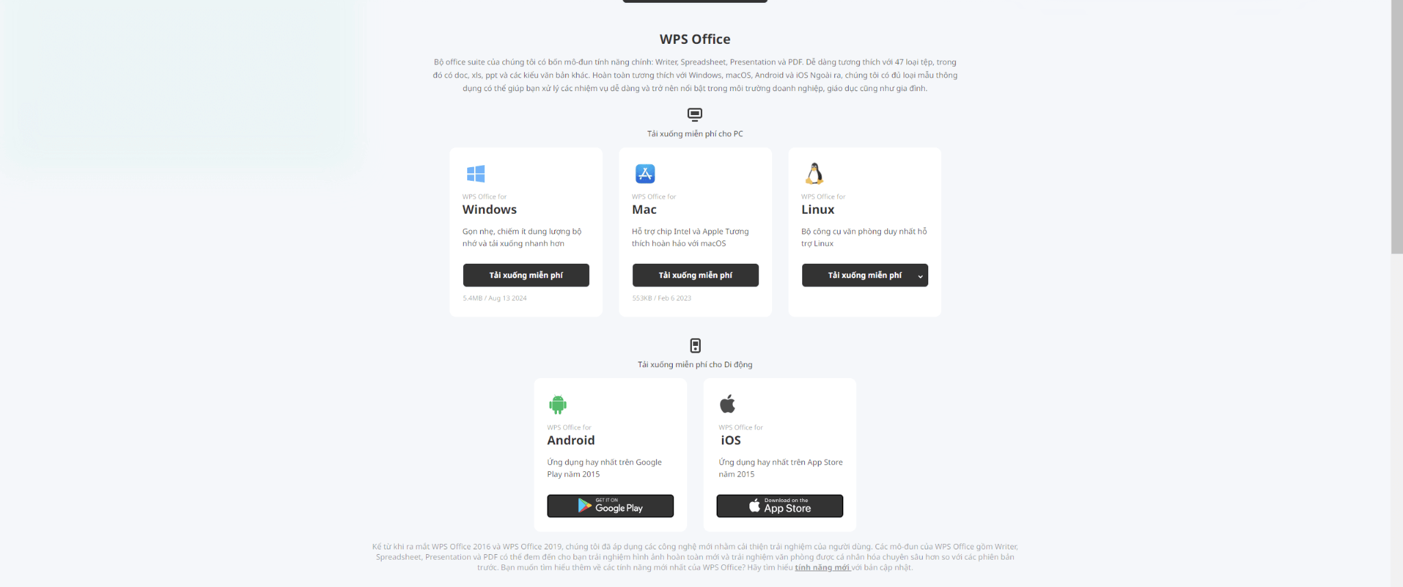Bước 1: Truy cập trang web WPS Office: https://www.wps.com/vi-VN/download/