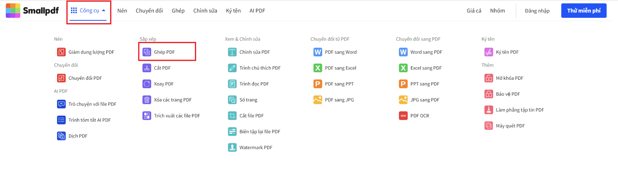 Bước 1: Sử dụng công cụ "Ghép Nối PDF".