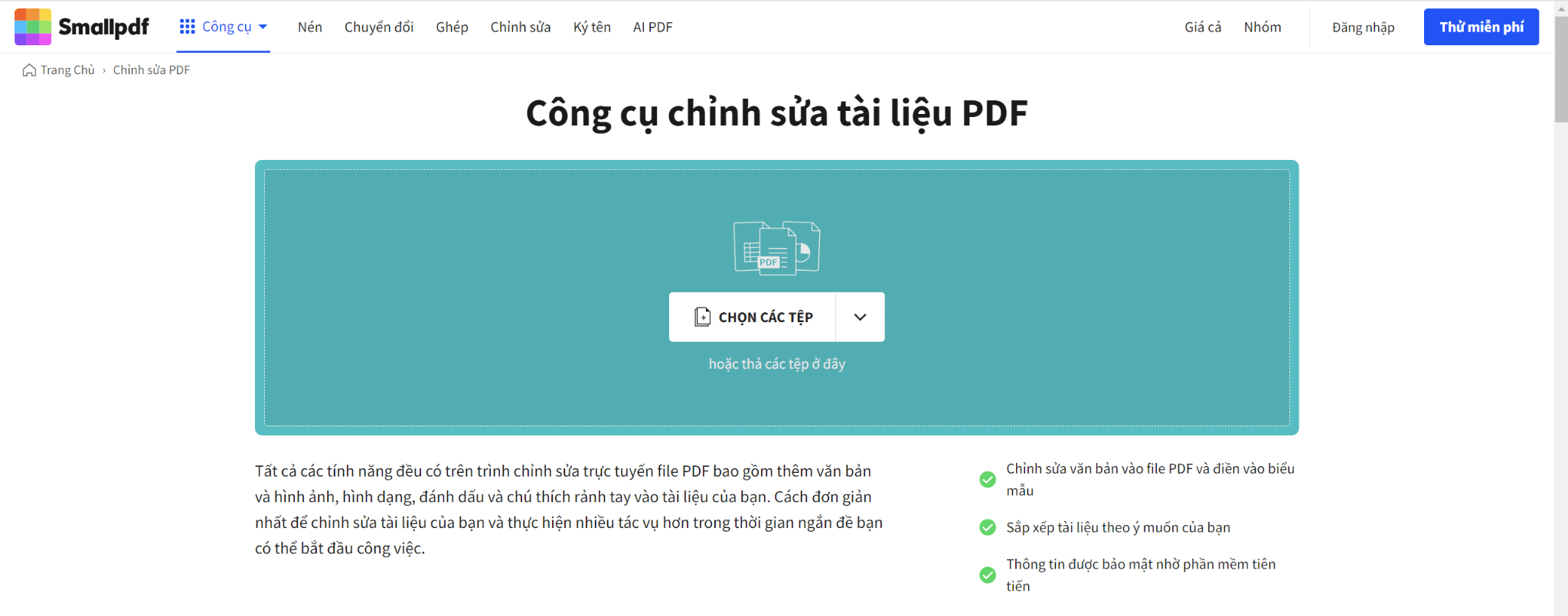 Để chỉnh sửa PDF bằng Smallpdf, vui lòng làm theo các bước sau: