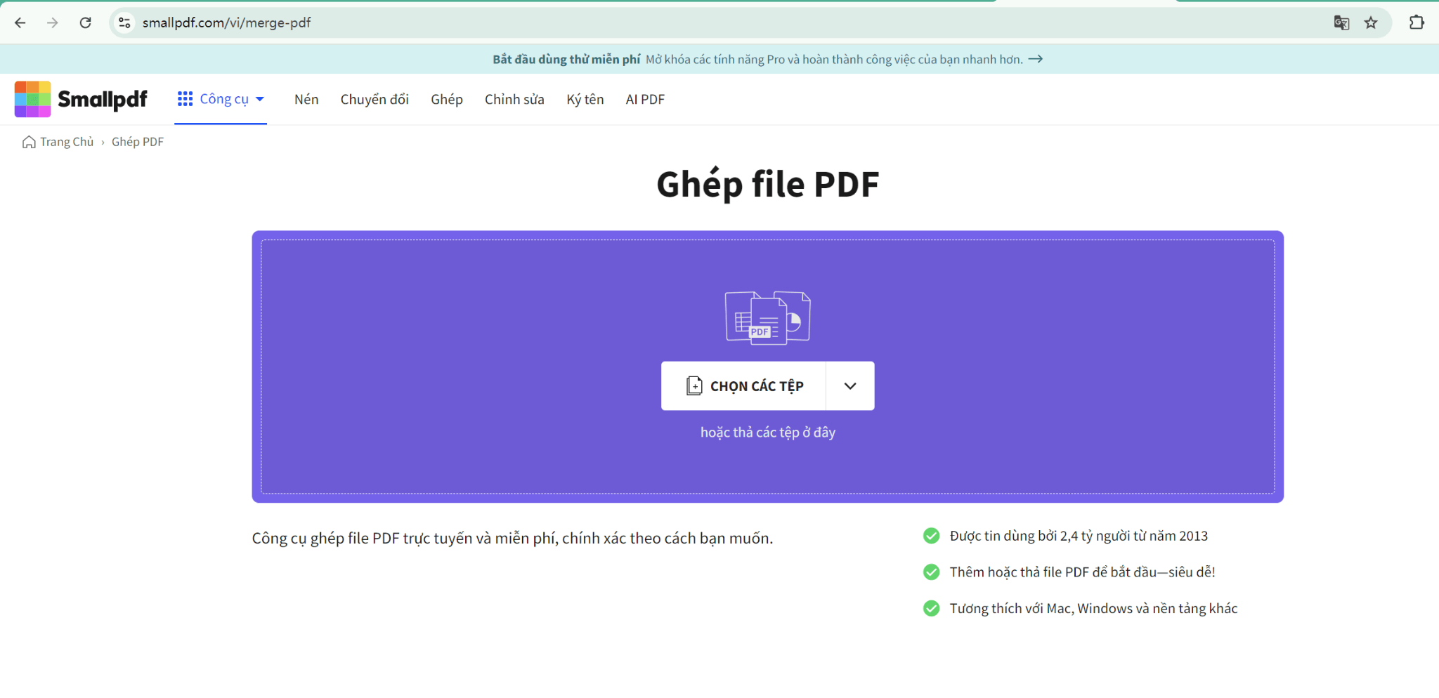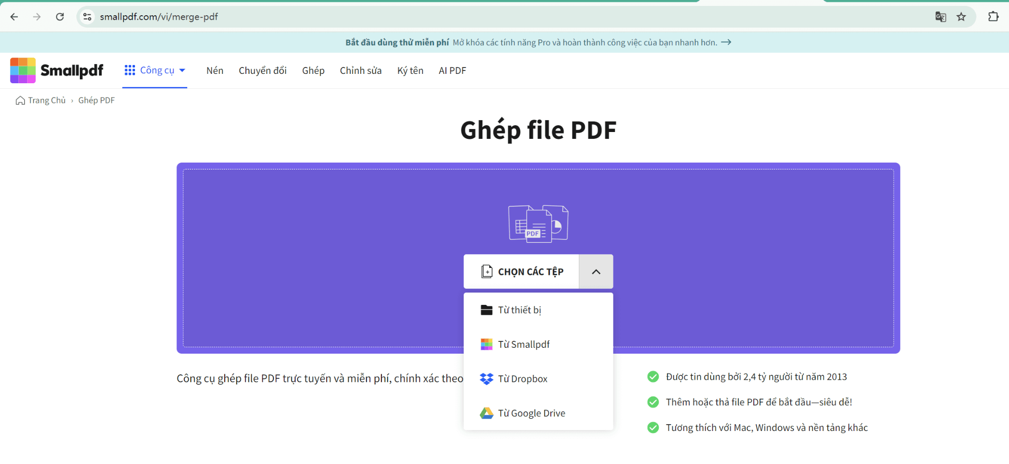 Cách Gộp PDF Trực Tuyến Bằng Smallpdf