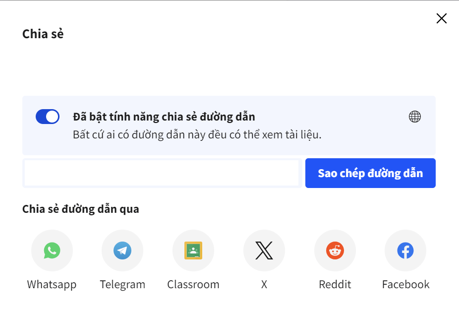Nhấp vào tab “chia sẻ” sẽ tạo ra một liên kết mà bạn có thể chia sẻ với nhóm của bạn để truy cập tài liệu.