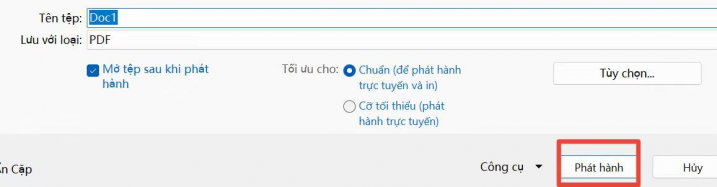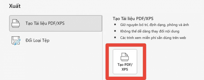 Bước 4: Nhấp vào nút Tạo PDF/XPS.